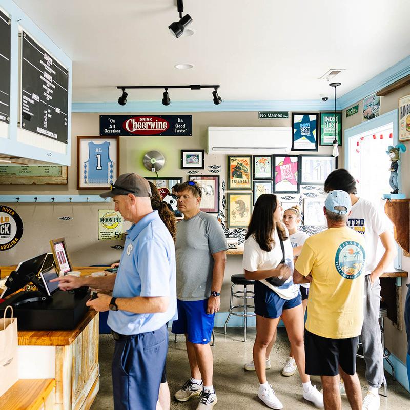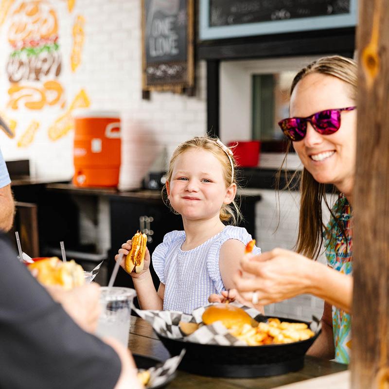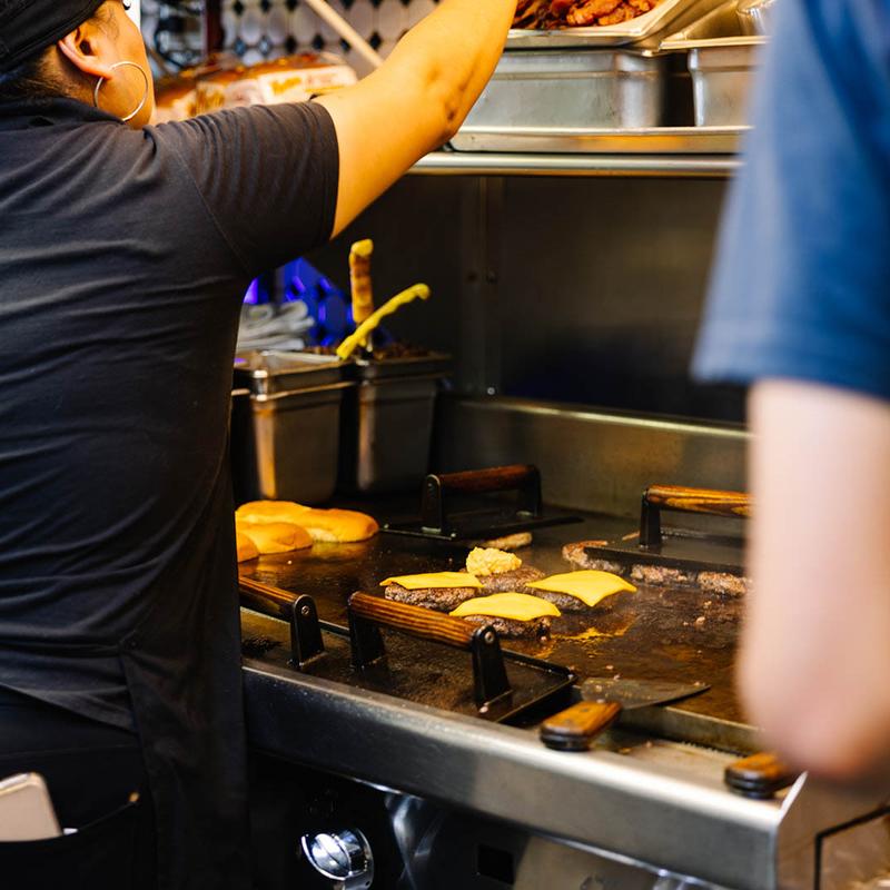 We cook burgers, hot dogs, sandwiches, and sides fresh-to-order with a hefty dose of Southern hospitality. We use 100% Angus ground chuck, always fresh, the gold standard for cheeseburgers. We hand-patty our beef, season it perfectly, and cook it to your preferred temperature. Our specialty toppings and sauces are made in-shack. We always serve fresh, hot, and crispy fries, sweet potato fries, and tots. Our frosty shakes are made with frozen custard from local creameries. Our beers are ice cold and our refreshing soft drinks are all served with that good ice. Come join us for a meal on the patio at the shack or let us bring the shack to you with our catering.